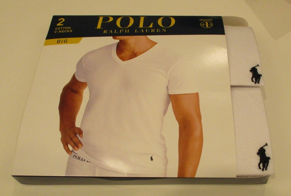 2 POLO RALPH LAUREN 2XL 3XL 4XL COTTON WHITE BLACK V NECK T-SHIRTS UNDERSHIRTS