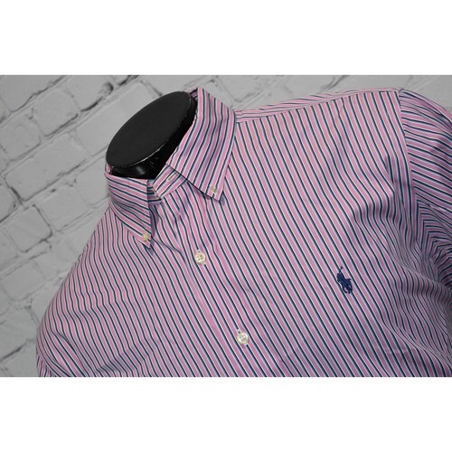 GENUINE RALPH LAUREN POLO SIZE 16 OR 16 1/2 BLUE WHITE PINK STRIPED COTTON SHIRT