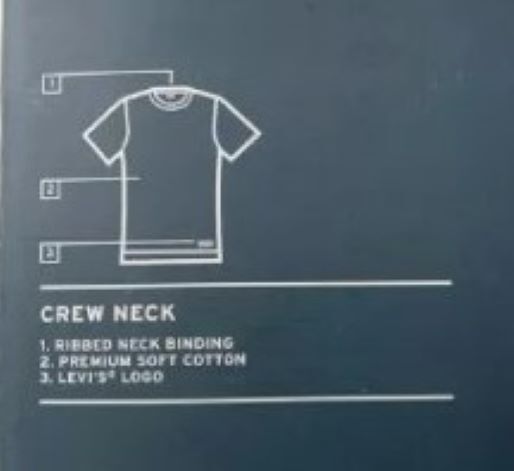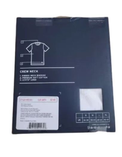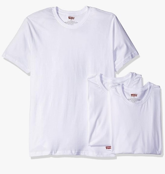 3 Genuine Levi's Premium Cotton Blend White Crew Neck T-Shirts This listing is for 1 package of 3 T-shirts 60% Cotton / 40% Polyester.. Classic fit. Crew Neck. Super Soft Fabric for comfort. Solid white. Authentic Levi's Logo Near Hem. Machine washable Imported Size chart Chest Size S M L XL Inches 34-36 38-40 42-44 46-48 CM 86-91 97-102 107-112 117-122