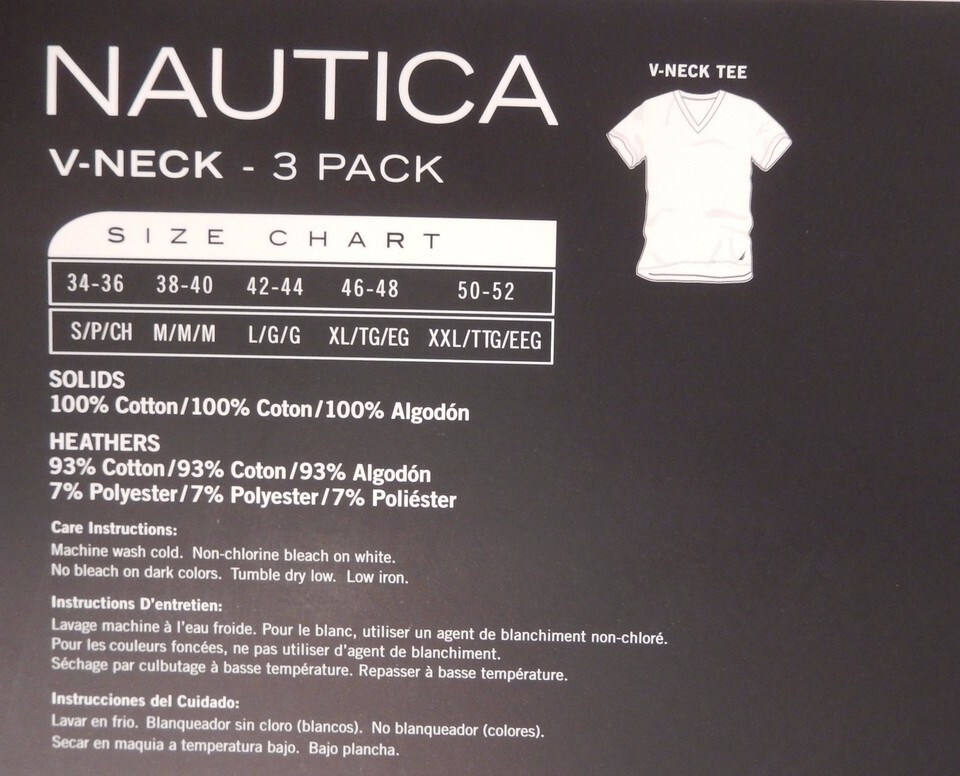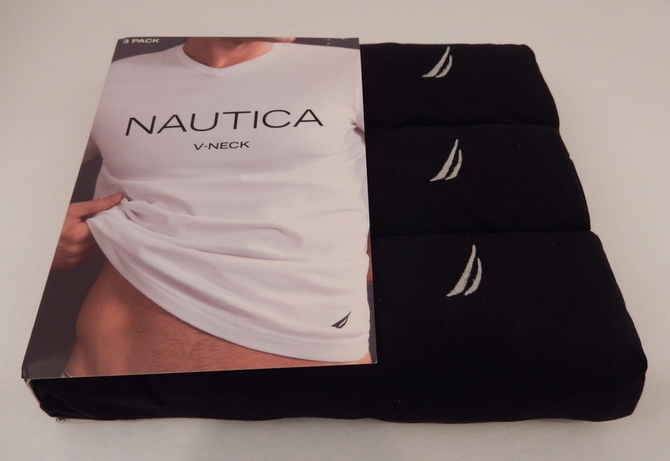 3 GENUINE NAUTICA MENS COTTON BLACK V NECK T SHIRTS UNDERSHIRTS S M L XL XXL NIP