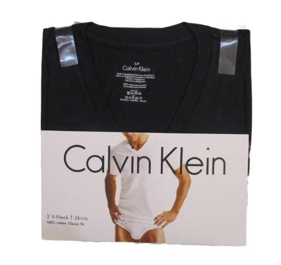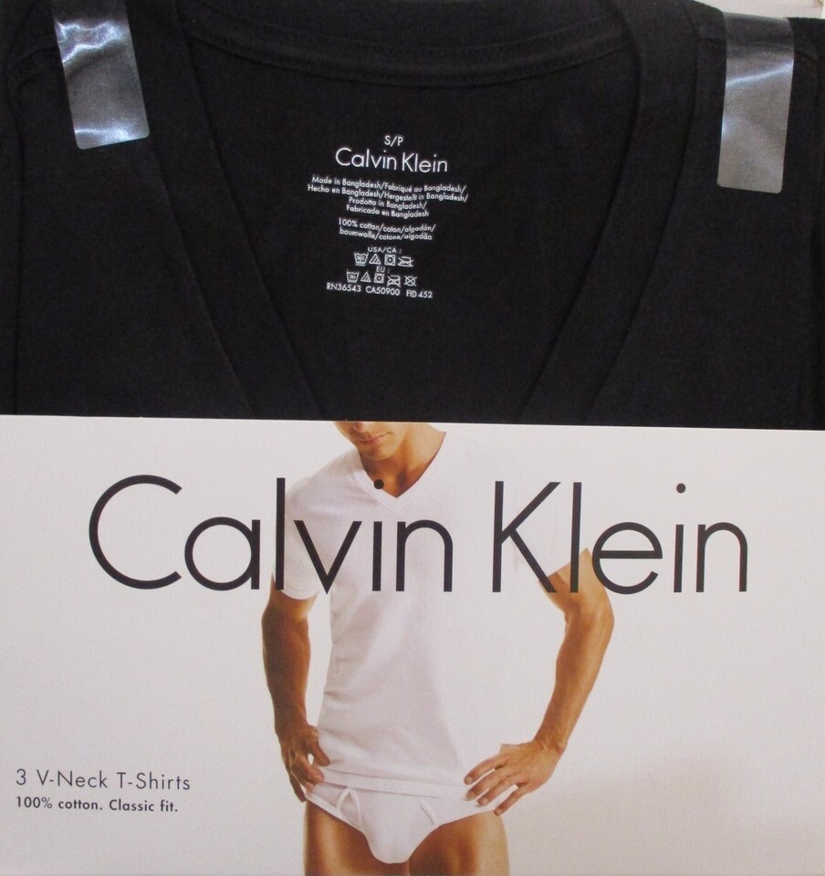 3 PACK GENUINE CALVIN KLEIN SIZE SMALL S BLACK V NECK 100% COTTON MEN'S T SHIRTS