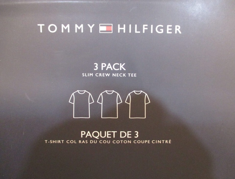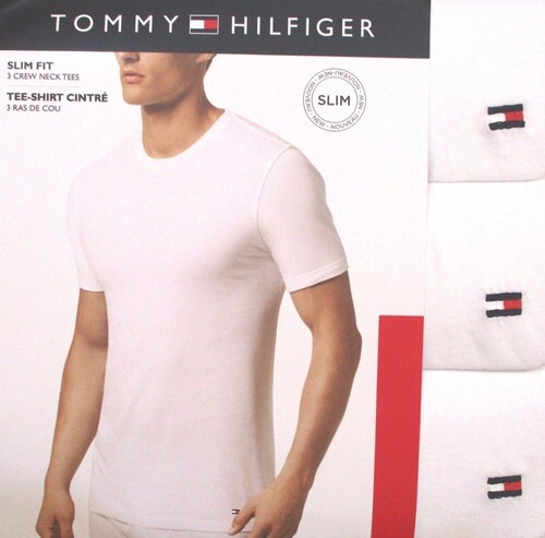 3 Genuine Tommy Hilfiger Whit Slim Fit Crew Neck T-Shirts - New
