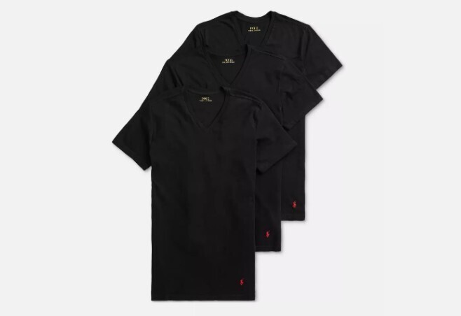 Polo Ralph Lauren 3-pack V neck tees. Three pack of V neck tees in soft cotton jersey. Embroidered pony player on bottom left hem.