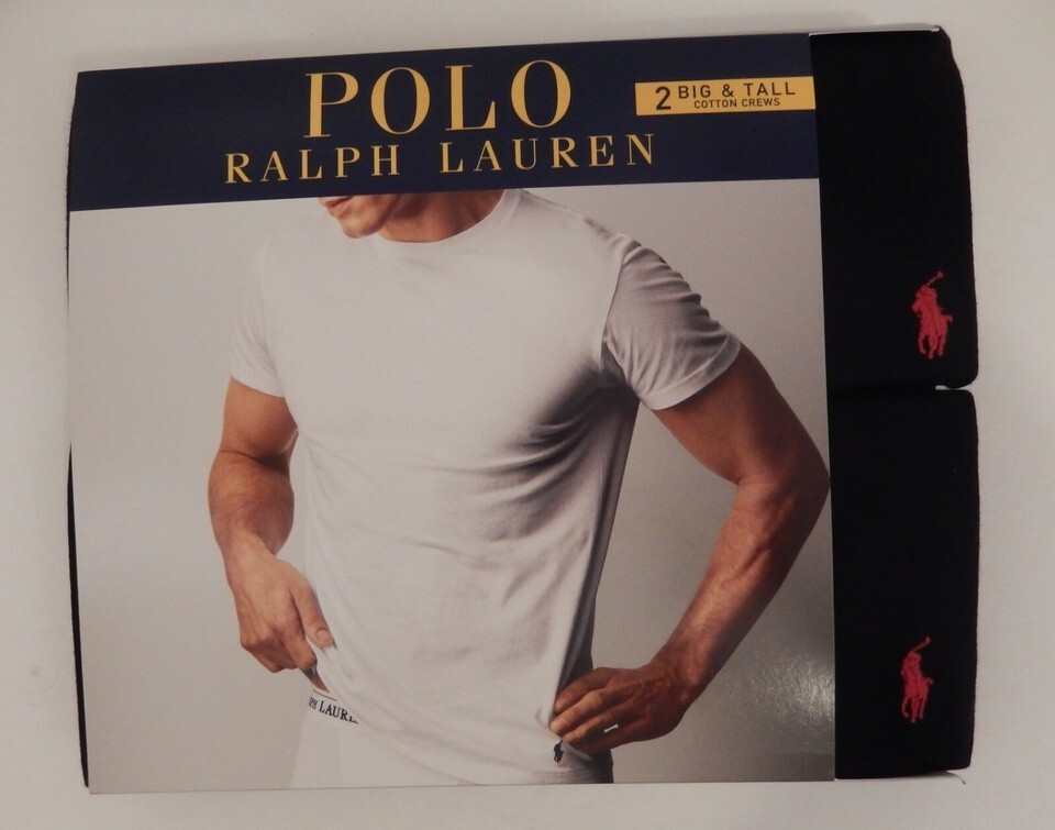 2 POLO RALPH LAUREN MENS 1XL 2XL BLUE WHITE COTTON CREW T-SHIRTS UNDERSHIRT