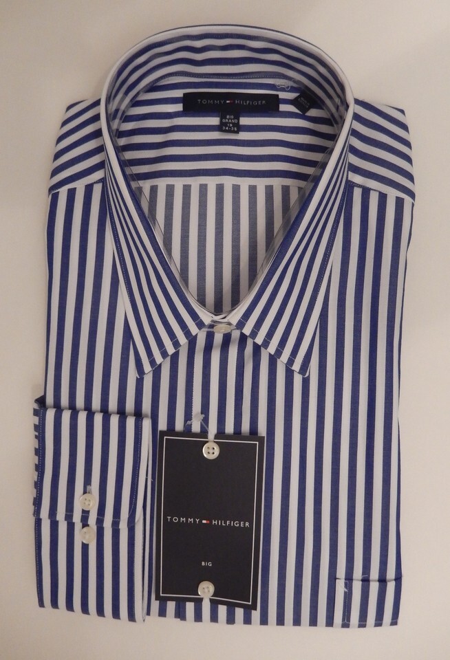 GENUINE TOMMY HILFIGER 100% COTTON CLASSIC FIT SHIRT WITH POCKET New with tags. Neck size: 17 inches Sleeve Length: 36/37 inches Color: Royal Blue and White Stripes Men?s Classic Fit Shirt with pocket Big and Tall Collection Long-sleeved dress shirt cut for a comfortable classic fit High medium-spread collar Barrel cuffs Finished with a shirttail hem 100% cotton Machine washable Imported Please note that the photos are representative photos. I have this shirt in many sizes and colors. I only take one photo for each color. The shirt you will receive will be in the same brand new condition with tags as the one shown in the photos.