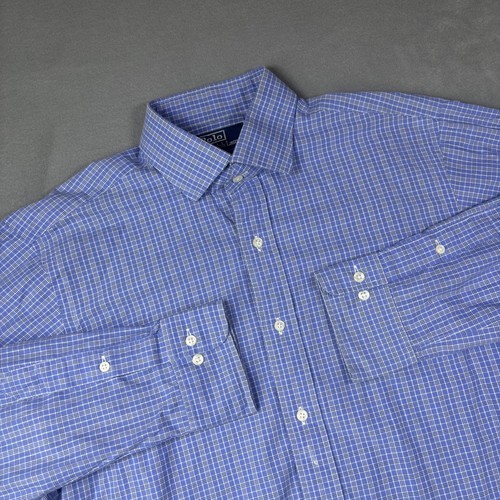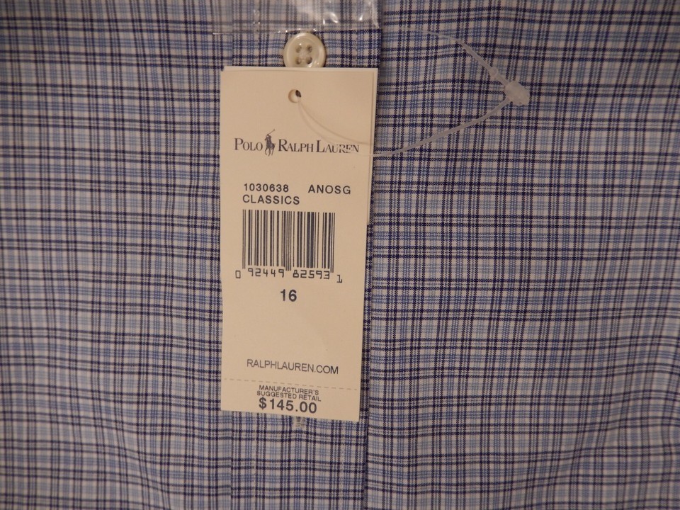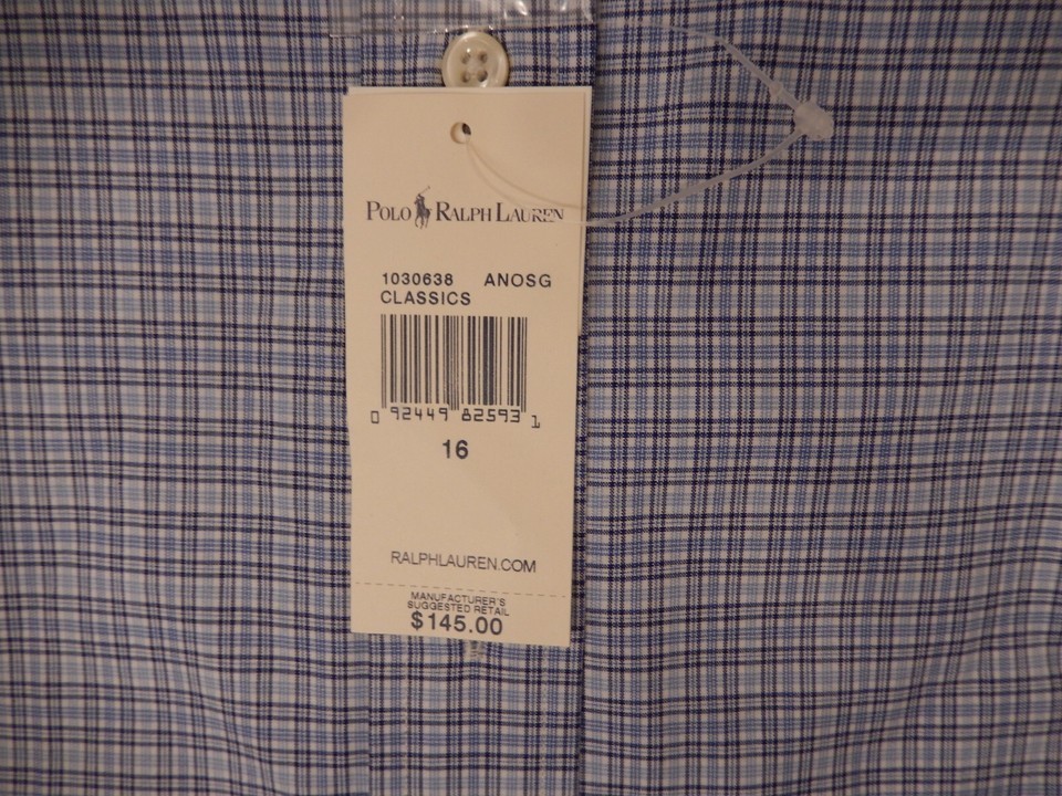 GENUINE RALPH LAUREN POLO SIZE 16 LARGE BLUE WHITE PLAID COTTON REGENT SHIRT NWT