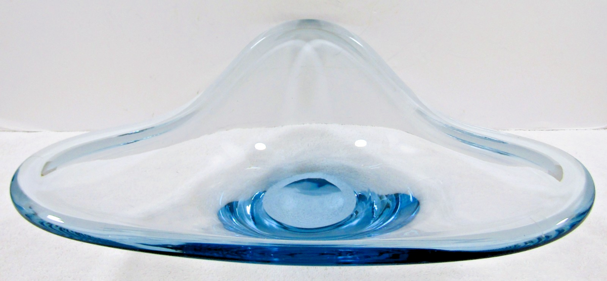 1957 Holmegaard Fionia Large Blue Glass Bowl Designed by Per Lütken