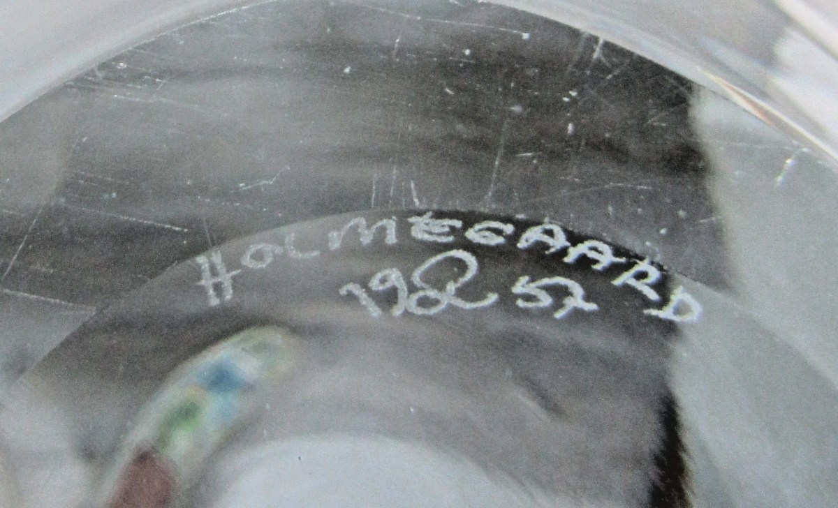Identifying Marks: These bowls are often signed and dated on the base, as this one, "Holmegaard 1957".