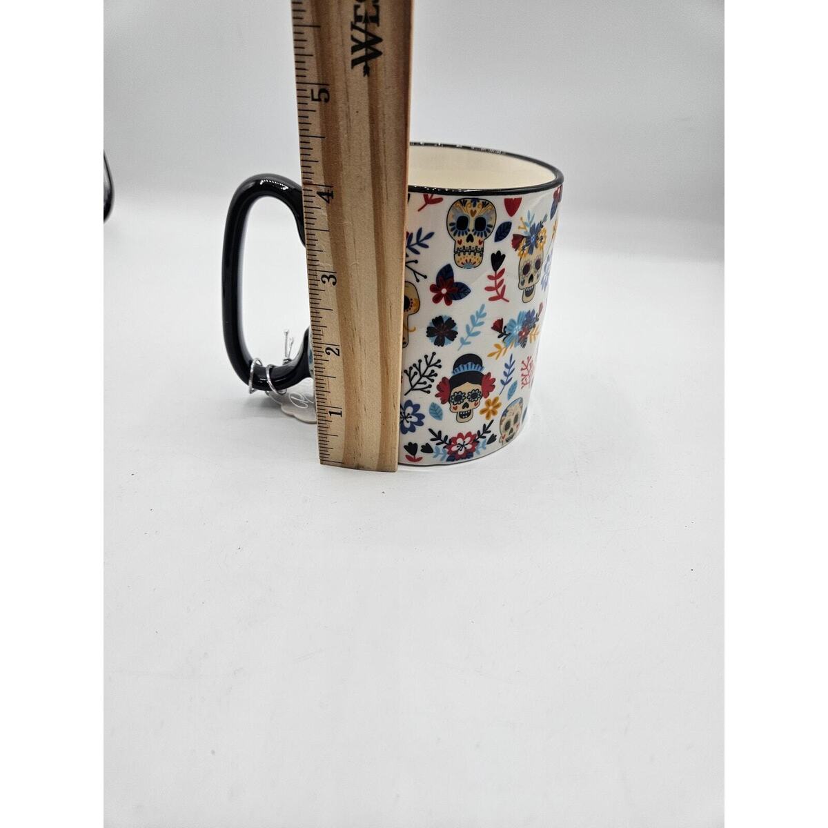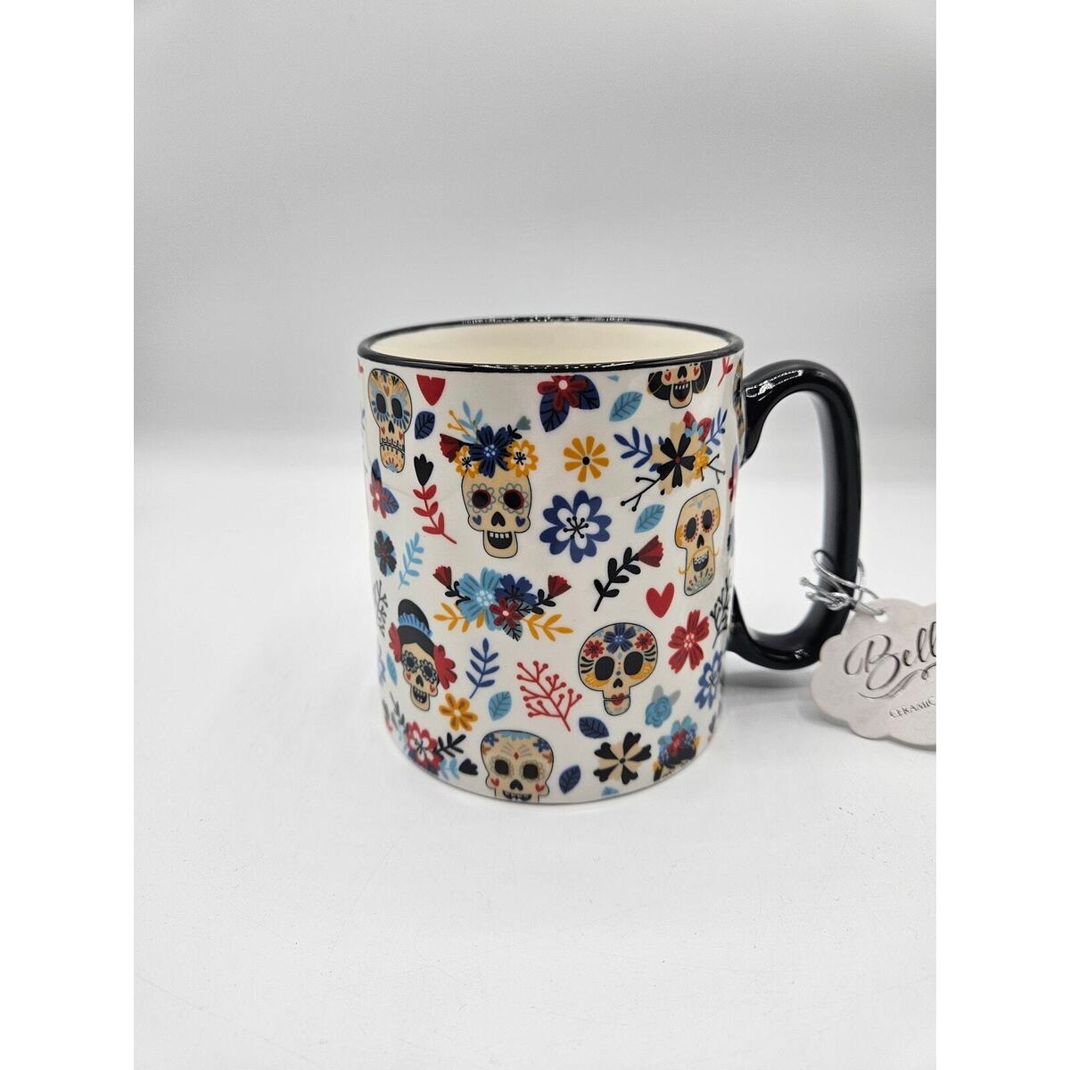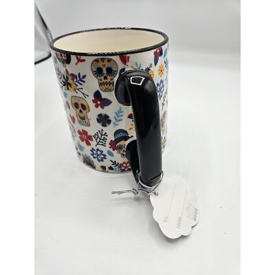 10 Strawberry Street Halloween 18 oz Coffee Soup Mug Sugar Skulls Floral NEW