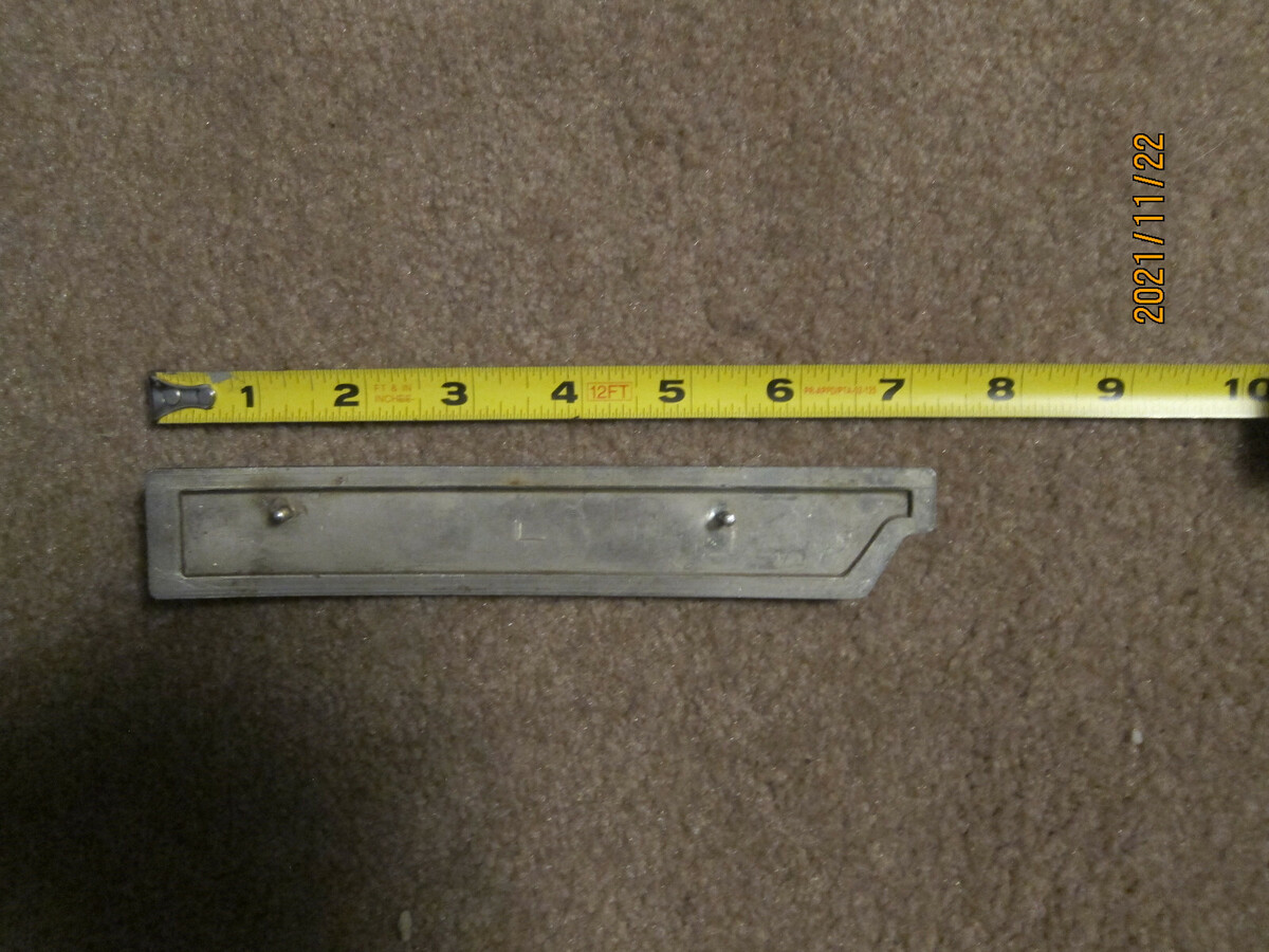 Honda fuel tank badge. Fits 73-76 CB750. Has mounting pins and the letter L on the back. I assume this indicates it is the Left badge. 7 1/4 inches long and 1 3/8 inches wide. 4 inches between the pins Slight damage to the N and the D. Check for fitment before purchasing.