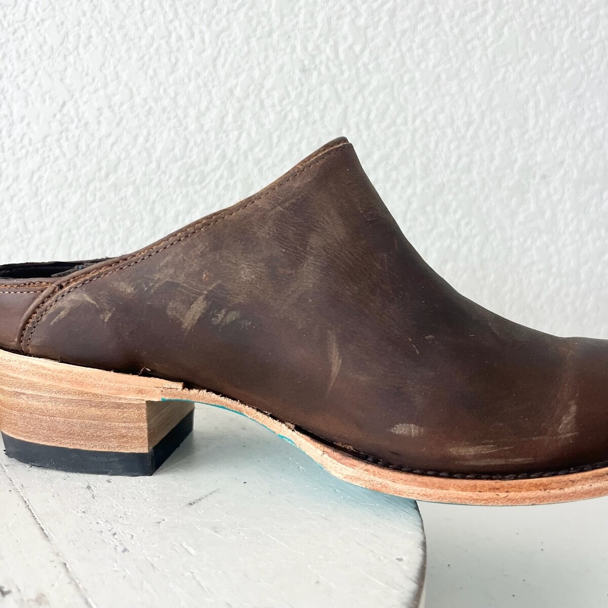 Lane Plain Jane Mule Womens Brown Leather Cowboy Boots Short Western Shoes Sz 7