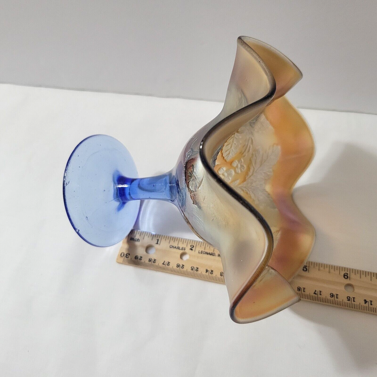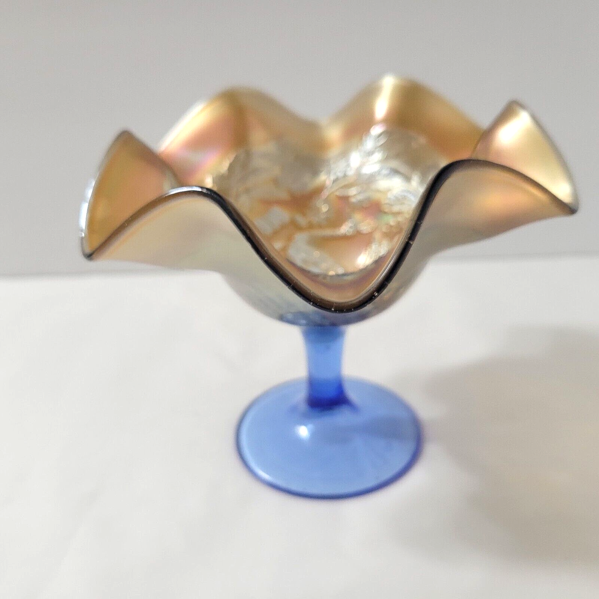 Blue and Marigold Iridized Carnival Glass -- beautiful addition to your collection / display!