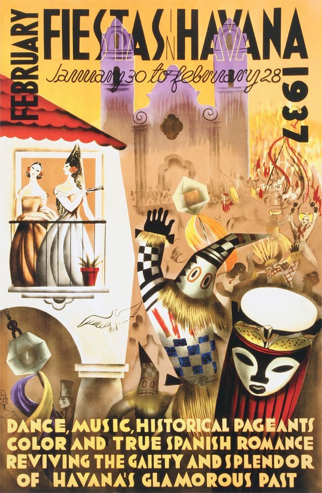 Poster February Fiestas Havana, Cuba 1937 Vintage Travel (17 x 26)