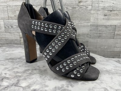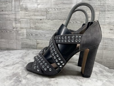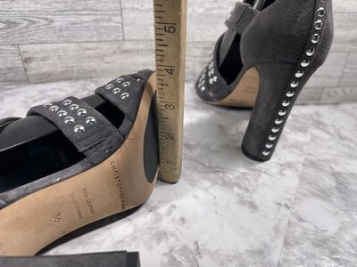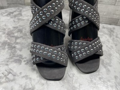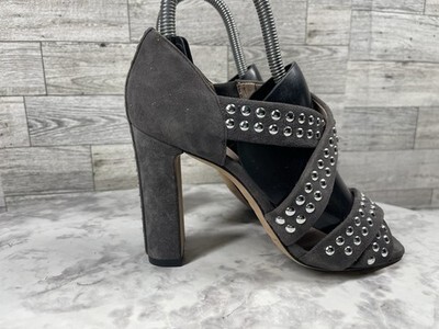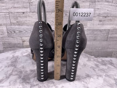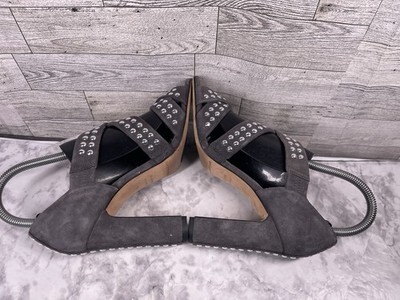 Christopher Kane Sandals Women 5.5M Shoes Gray Suede Silver Studded Block Heels
