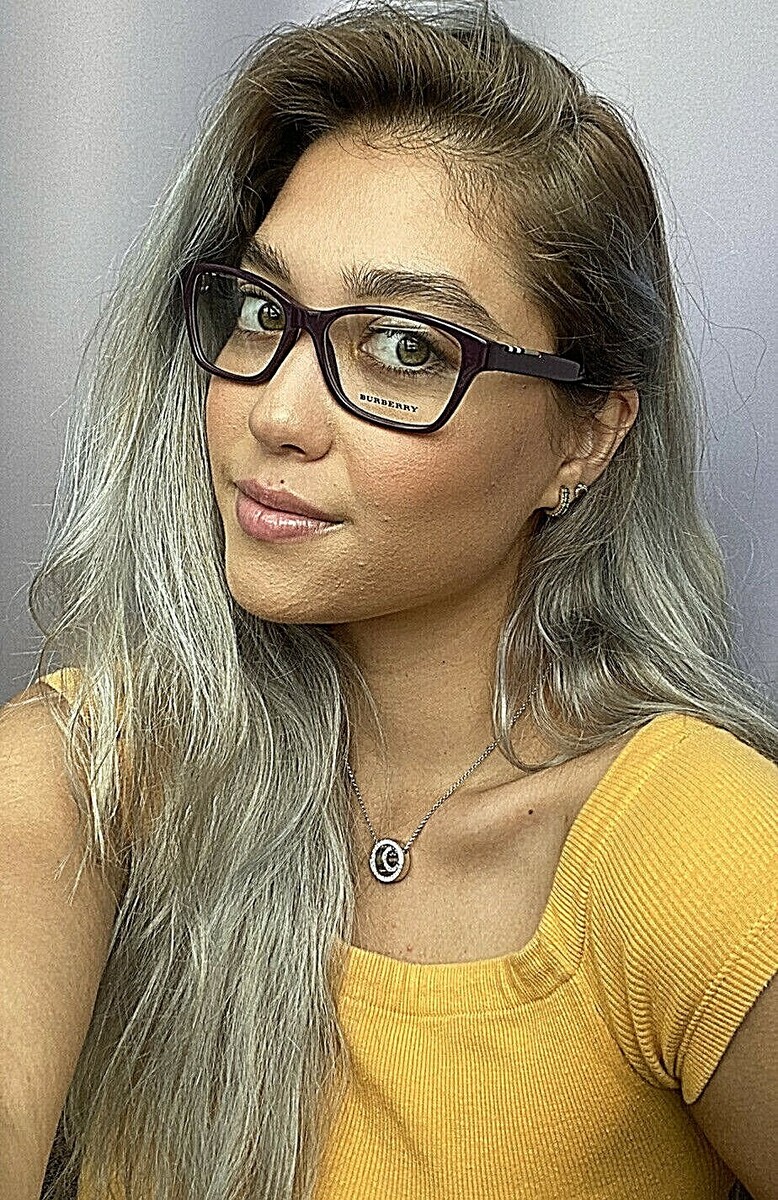 New BURBERRY B 2144 3424 53mm Burgundy Cat Eye Rx-able Women's Eyeglasses Frame