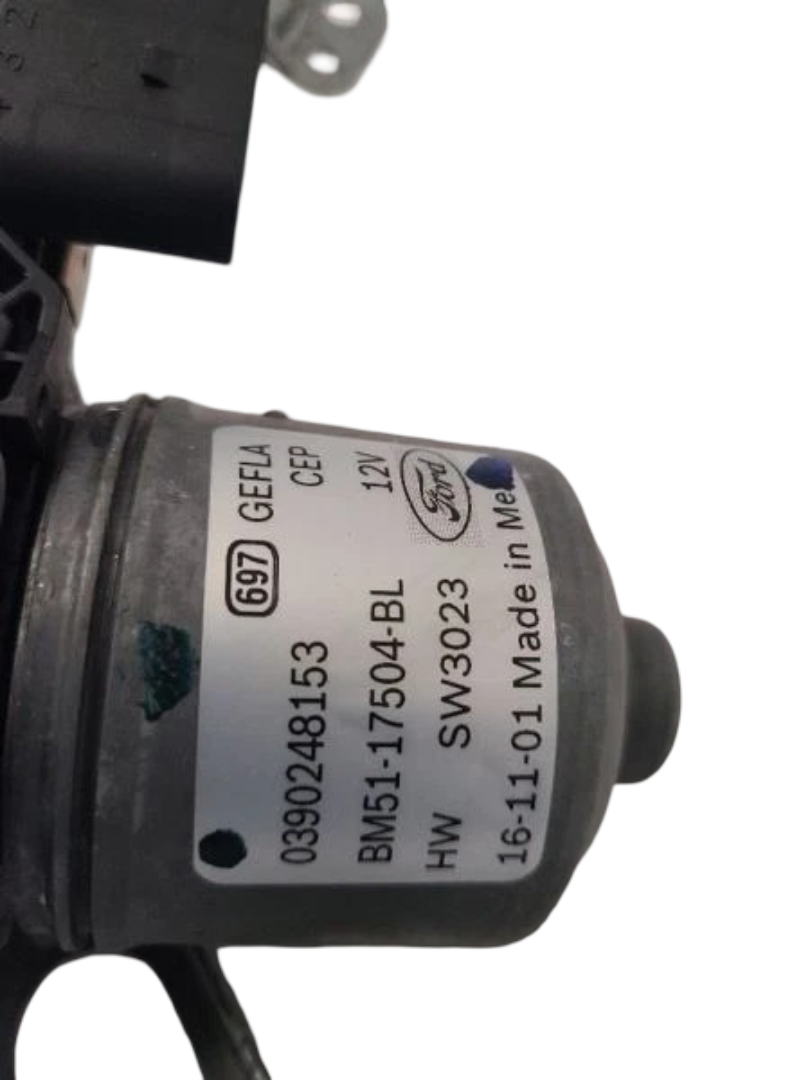 This right passenger windshield wiper motor fits 2012?2017 Ford Focus models and carries OEM part number 0390248153. It is designed to power the right passenger side windshield wiper for dependable clearing performance. The motor is in good used condition with normal wear from use, showing no cracks, broken connectors, or physical damage, and all mounting points are intact. This is a direct replacement OEM part and will be shipped with proper tracking.