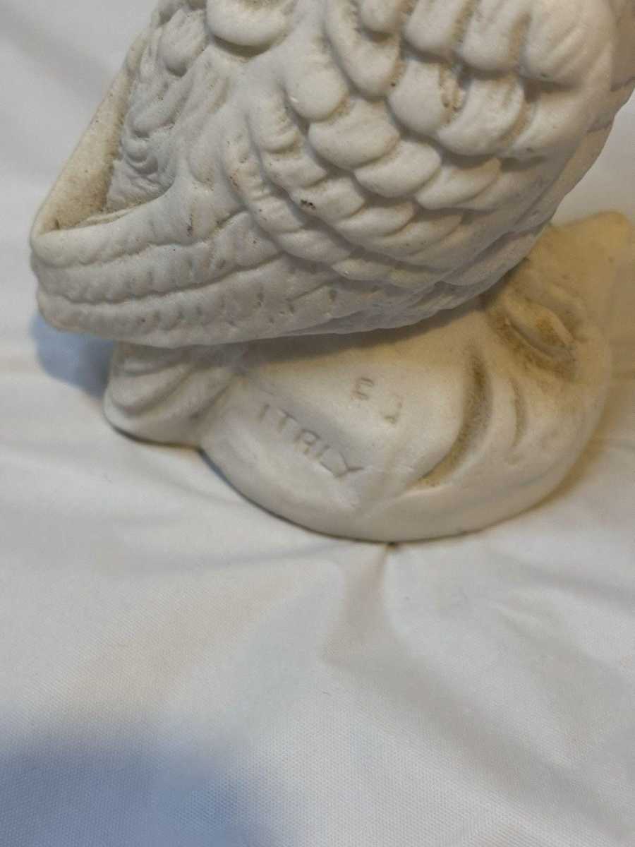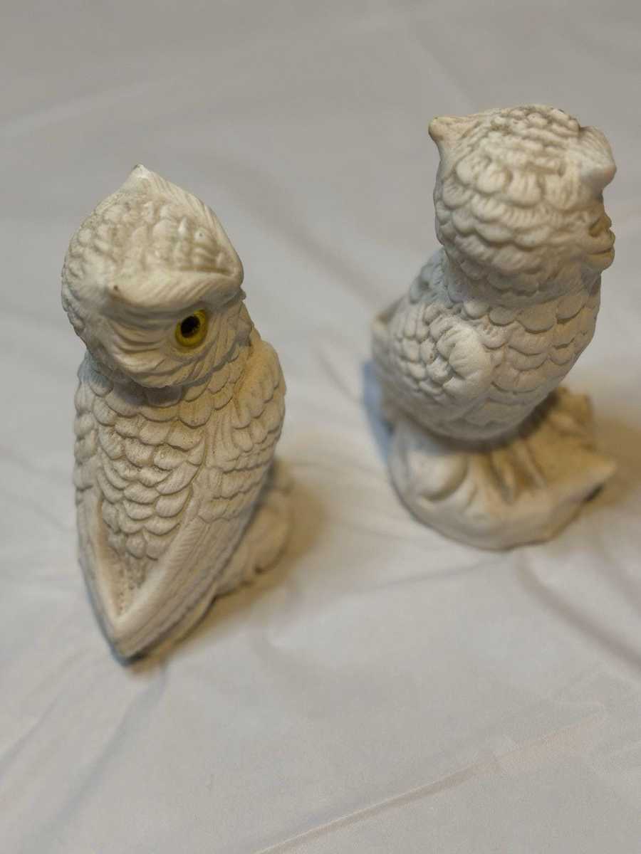 A Pair of Vintage Alabaster White Owl Figurine Yellow Eyes Made In Italy
