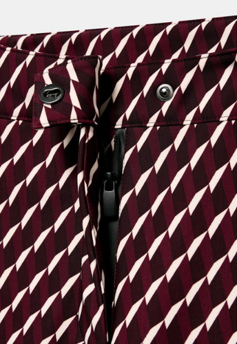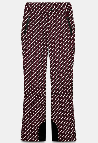 technical burgundy trousers with windbreaker fabric, prevents air from penetrating when exposed to high-intensity winds. Water-resistant, withstands 13.8 K (penetration of 13,800 mm of water pressure) preventing you from getting wet with drizzle for short periods of time. Padded back waist and soft fleece lining, providing greater warmth and comfort. Equipped with RECCO* technology to help rescue professionals find you in the event of an accident, avalanche or getting lost in a hard-to-reach area.
