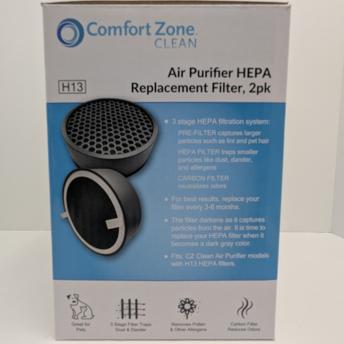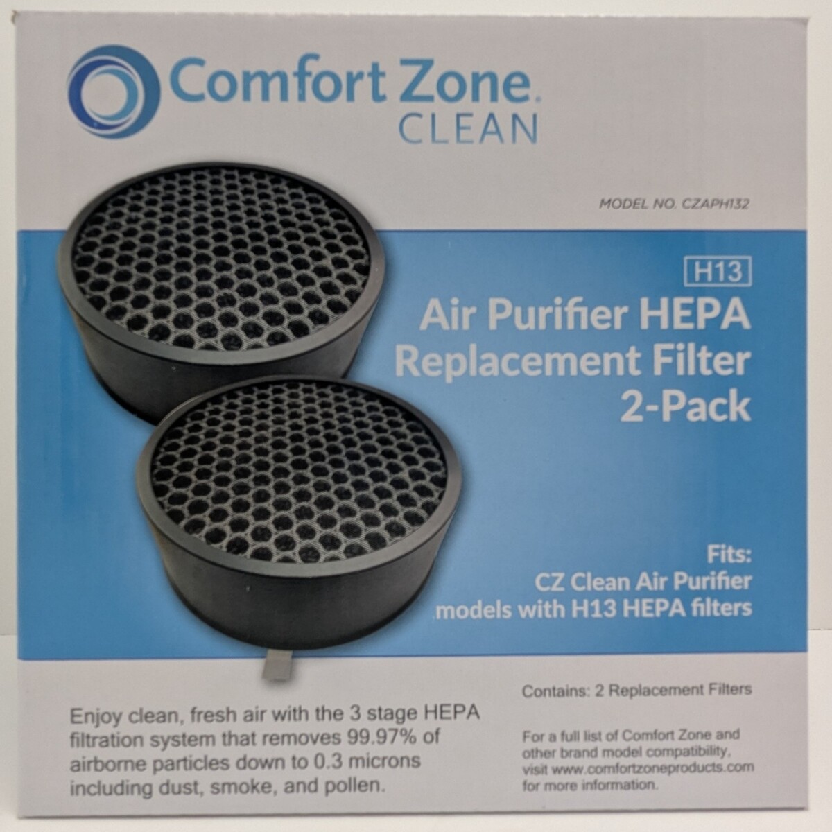 Keep your air clean and fresh with this replacement H13 HEPA filter 2-pack for Comfort Zone air purifiers. Designed to trap airborne particles like dust, pollen, pet dander, and smoke, these high-efficiency filters help maintain optimal air quality in your home, office, or bedroom. This set includes two genuine Comfort Zone H13 HEPA filters (MPN: CZAPH132) ? ideal for regular maintenance and long-lasting performance.