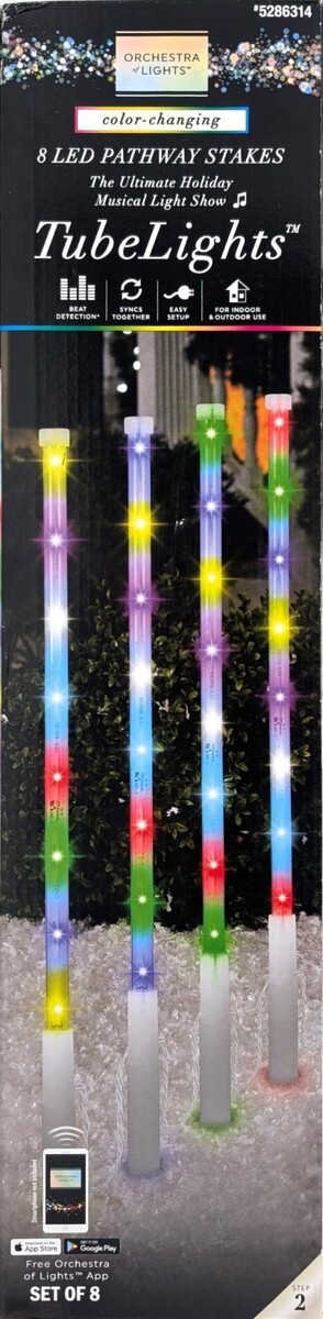 ORCHESTRA OF LIGHTS 5286314 COLOR-CHANGING 8 LED TUBELIGHT STAKES (STEP 2) - NEW