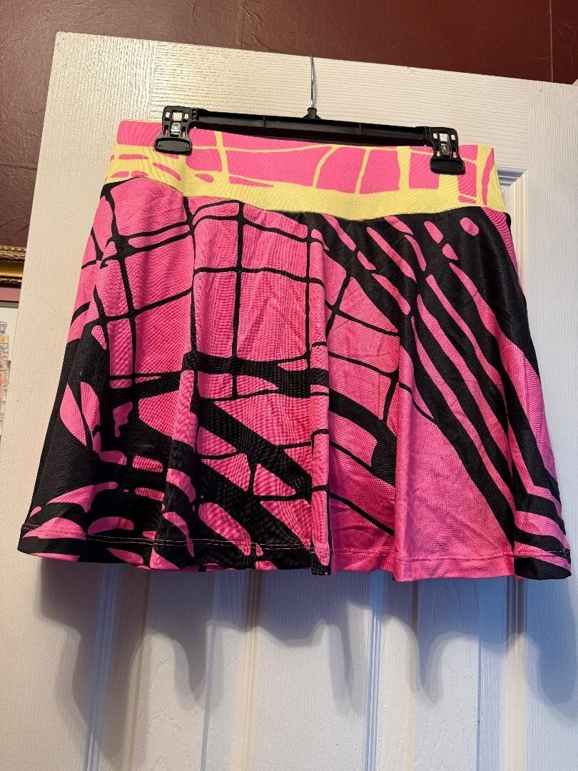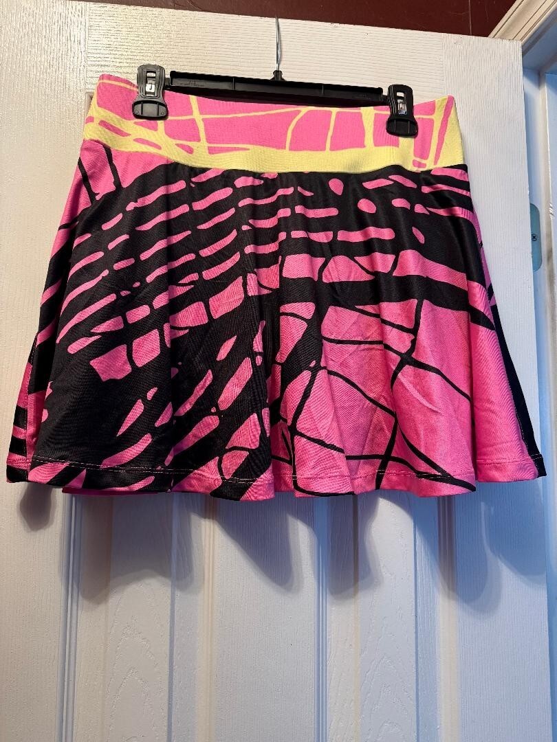 NWT Jamie Sadock Simplicite Hot Pink Black Yellow Golf Tennis Knit Skort M L