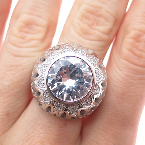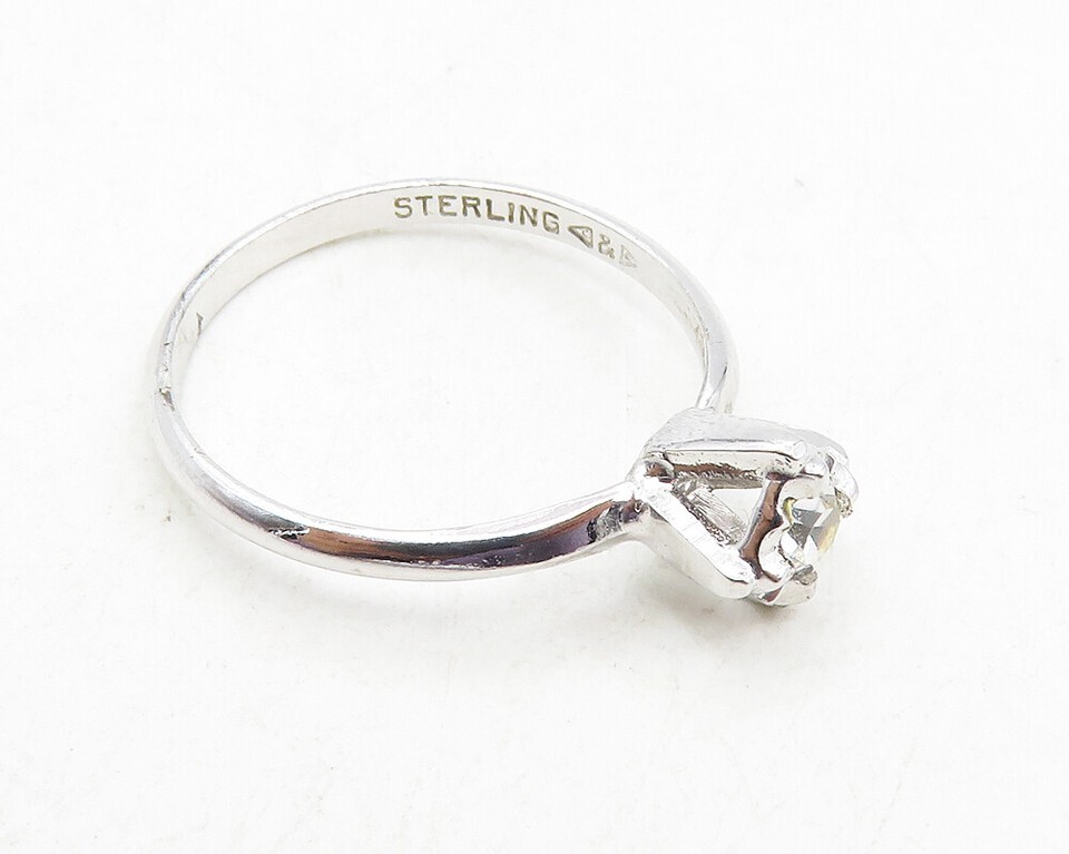 CLARK & COOMBS 925 Silver Shiny Cubic Zirconia Solitaire Ring Sz 8 RG9878