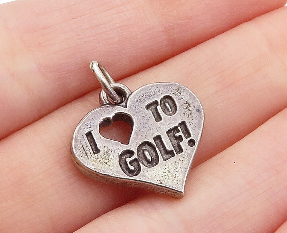 925 Sterling Silver Vintage Oxidized I Love To Golf Stamped Pendant PT4928