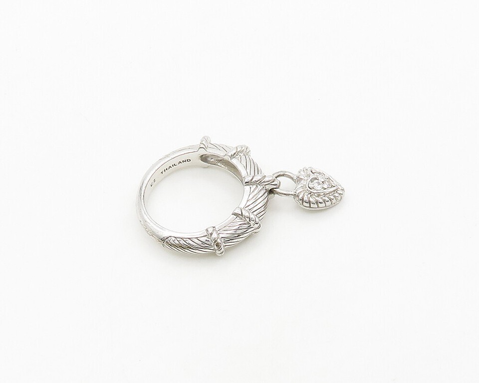 JUDITH RIPKA 925 Silver Vintage Topaz Love Heart Band Ring Sz 6 RG19602