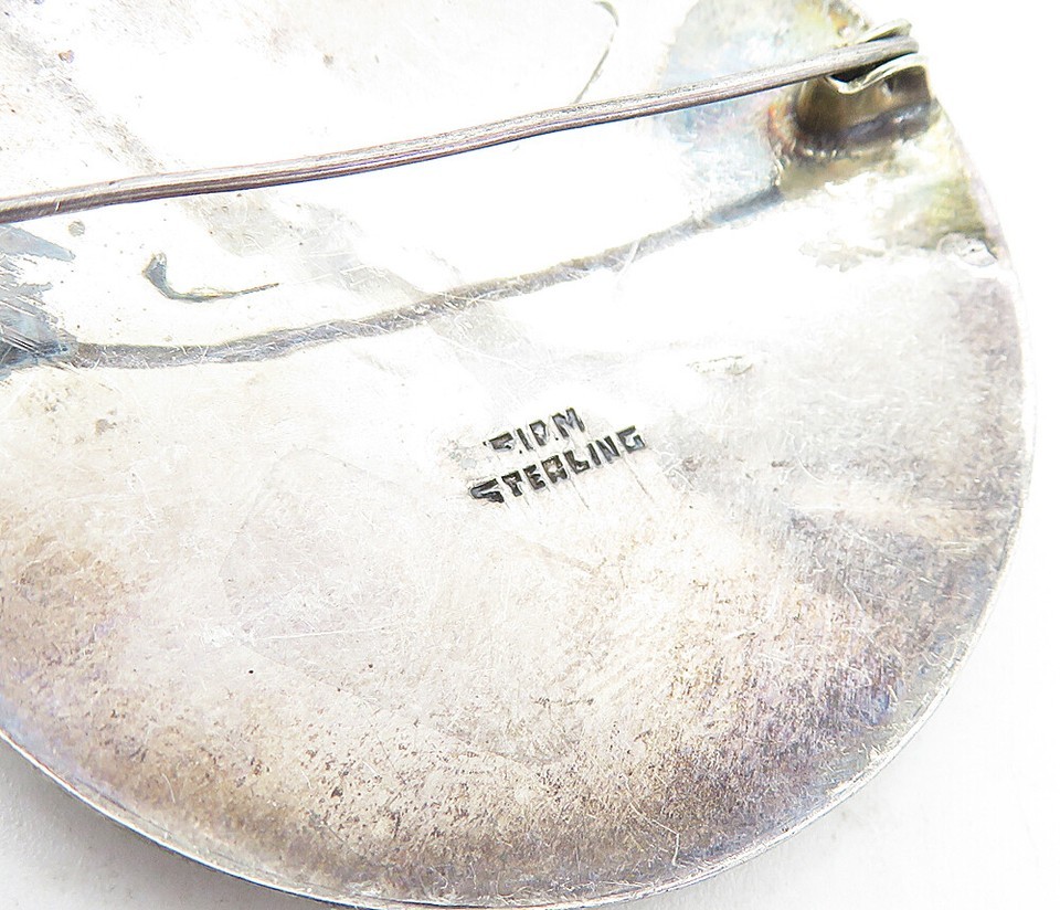SIAM 925 Sterling Silver Vintage Enamel Niello Dancer Round Brooch Pin BP1577