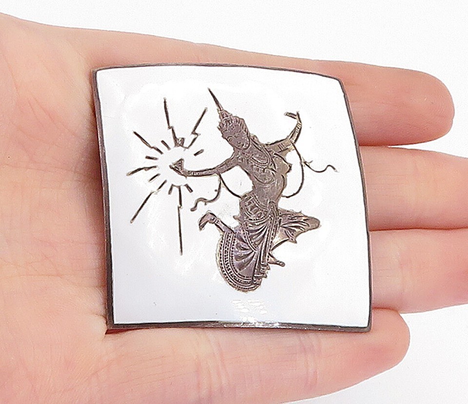 SIAM 925 Sterling Silver Vintage Enamel Niello Dancer Brooch Pin BP1576