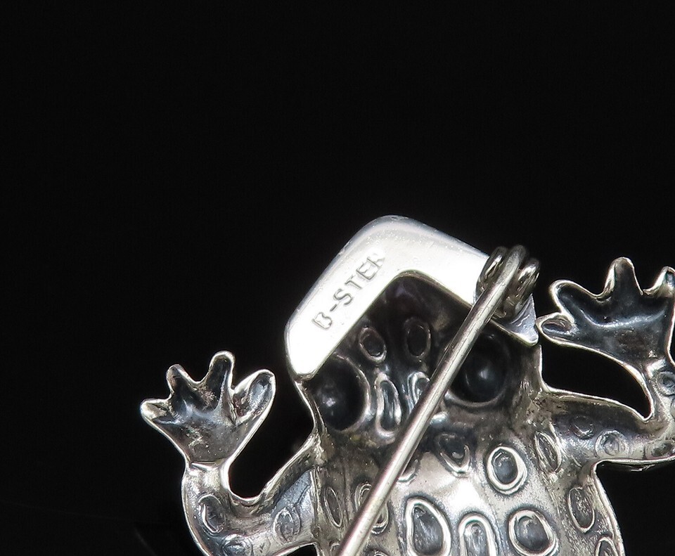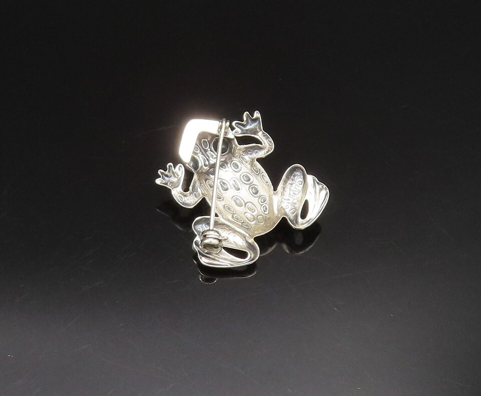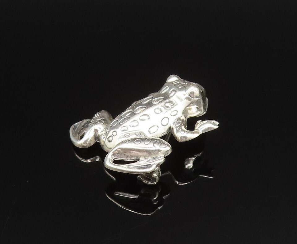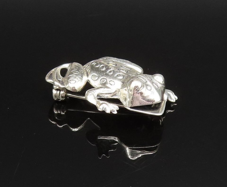 925 Sterling Silver Vintage Carved Spotted Frog Animal Brooch Pin BP9687