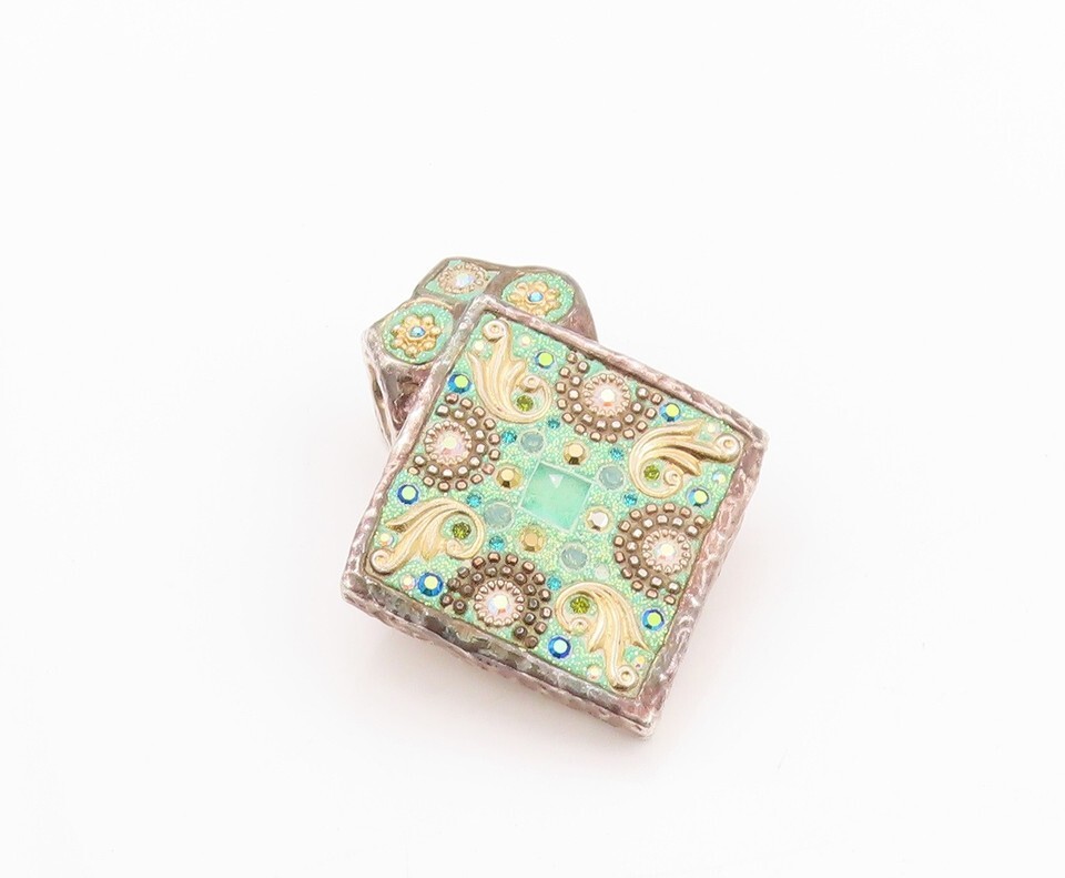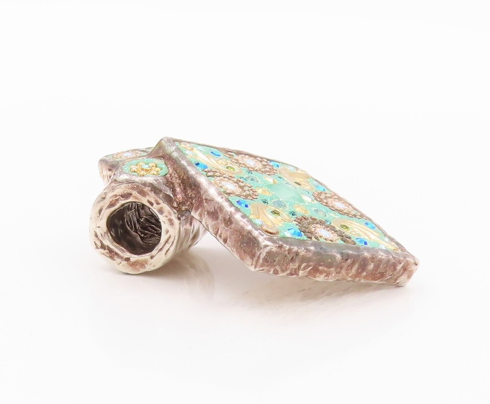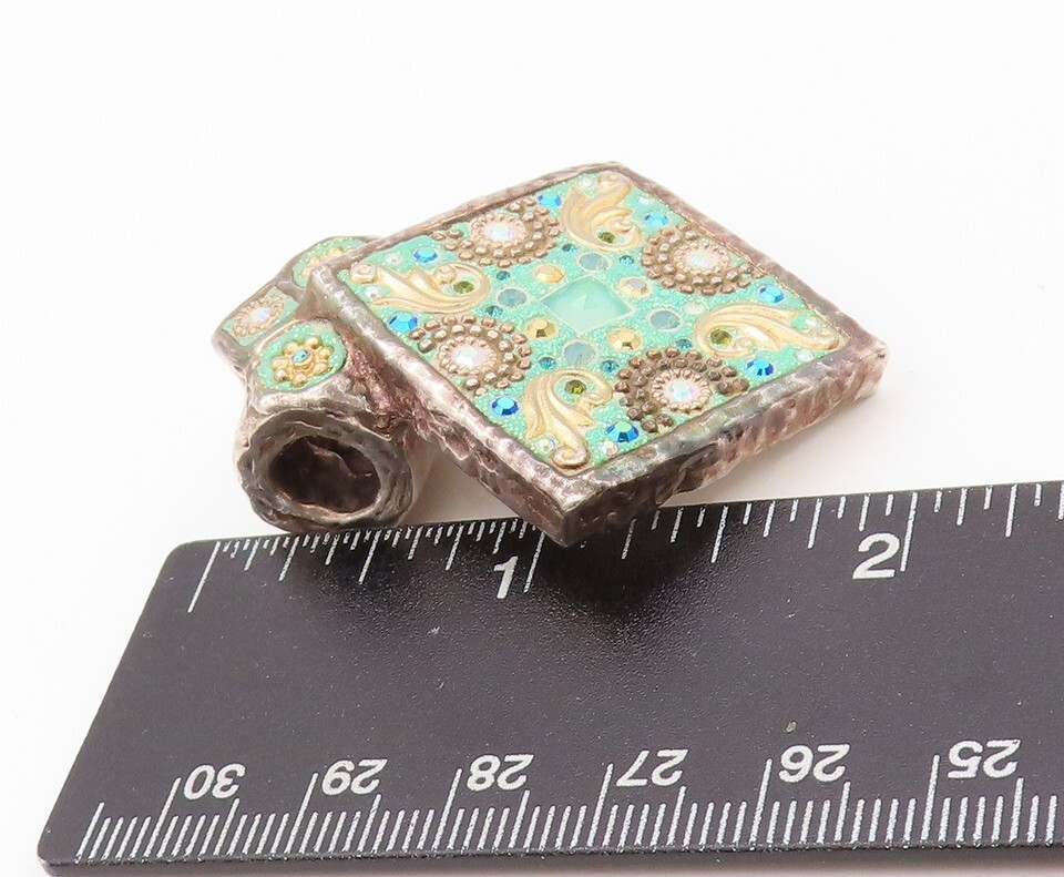 925 Sterling Silver Vintage Pendant Designer Enameled Rhinestones Inlay PT24008