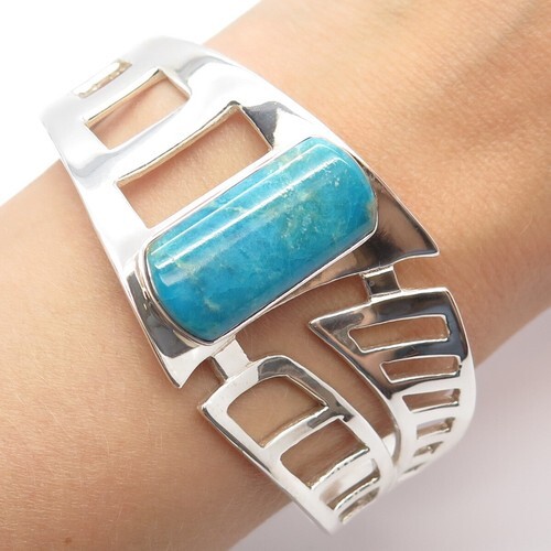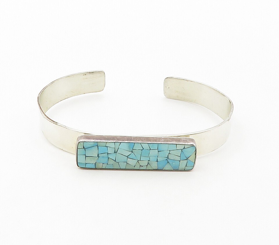 DTR JAY KING 925 Silver Vintage Turquoise Mosaic Shiny Cuff Bracelet BT6540