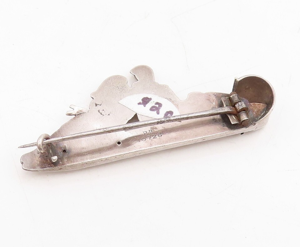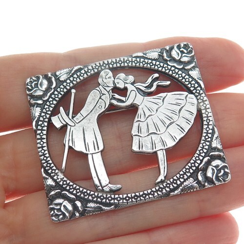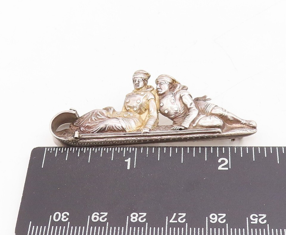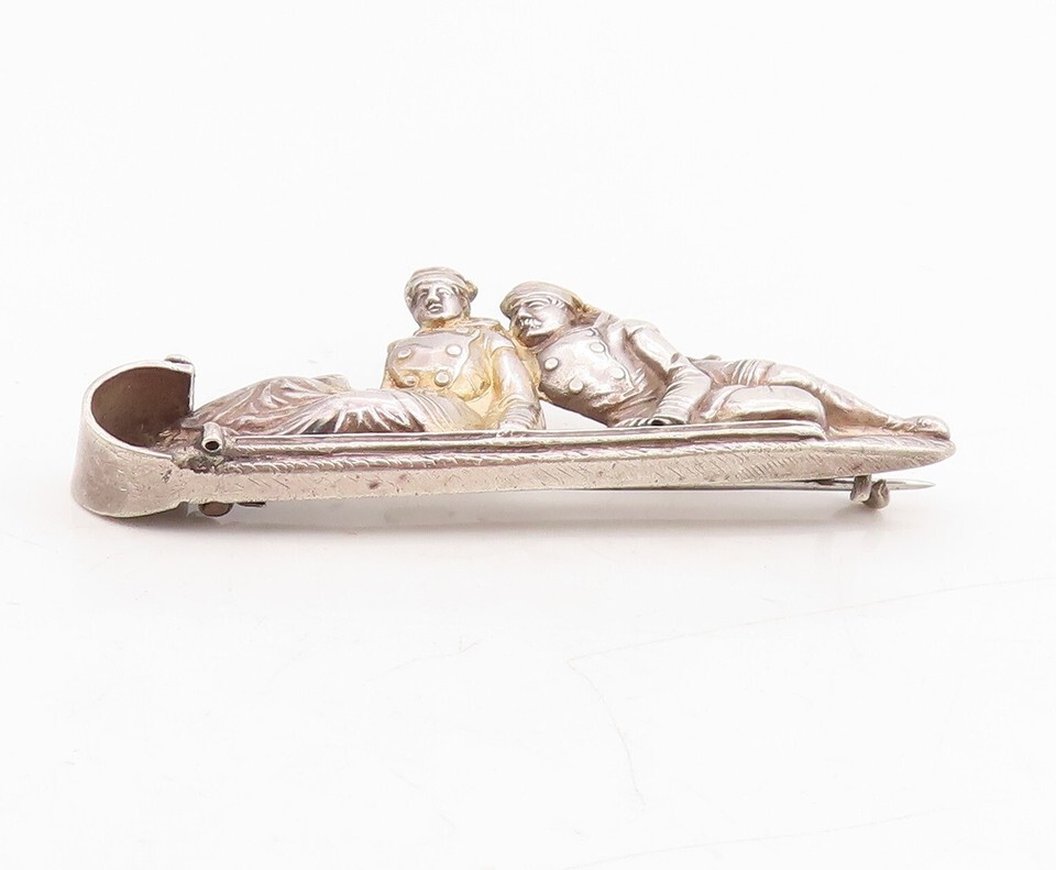 925 Sterling Silver Vintage Brooch European Design Couple On Boat BP11495