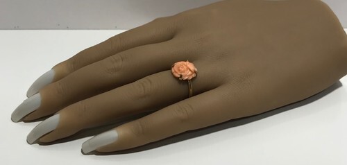 Authenticity Guarantee ENGLAND 9K GOLD Vintage Antique Carved Coral Triple ...