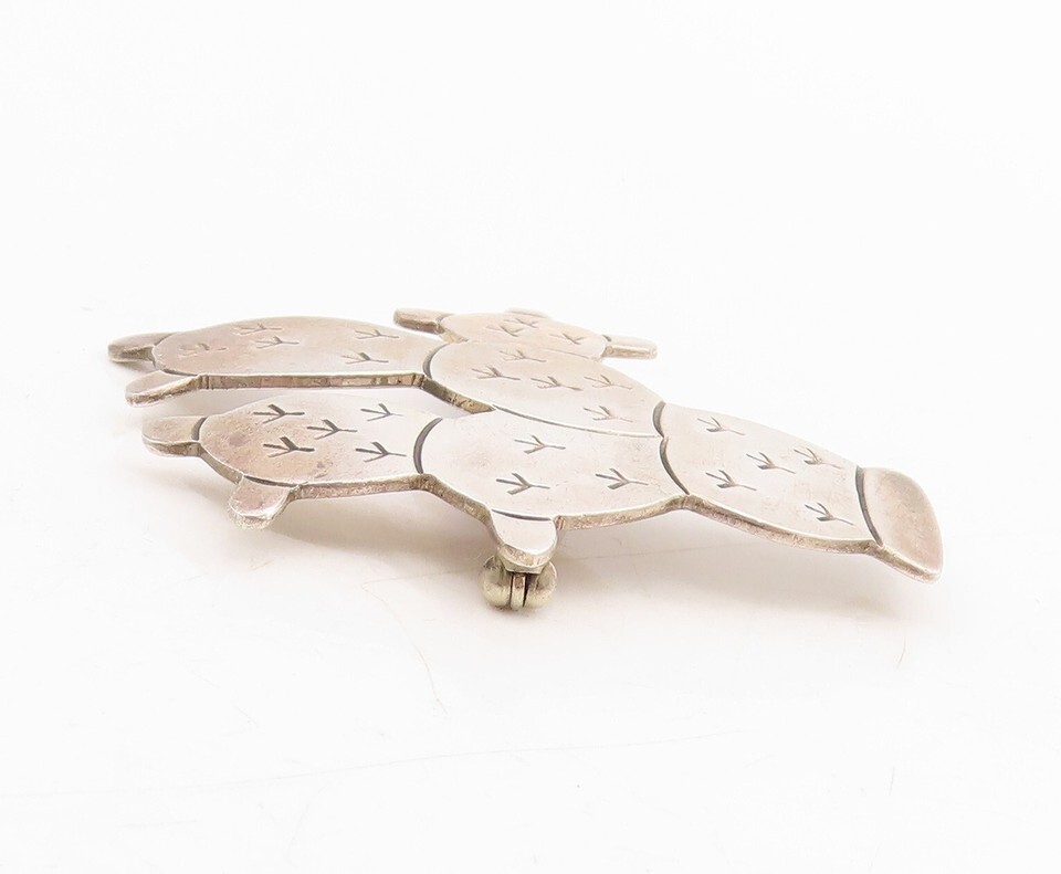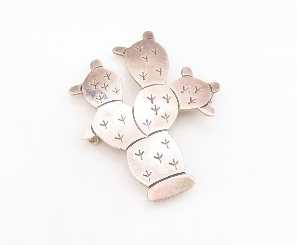 925 Sterling Silver Vintage Brooch Pin MEXICO Solid Etched Cactus BP11463