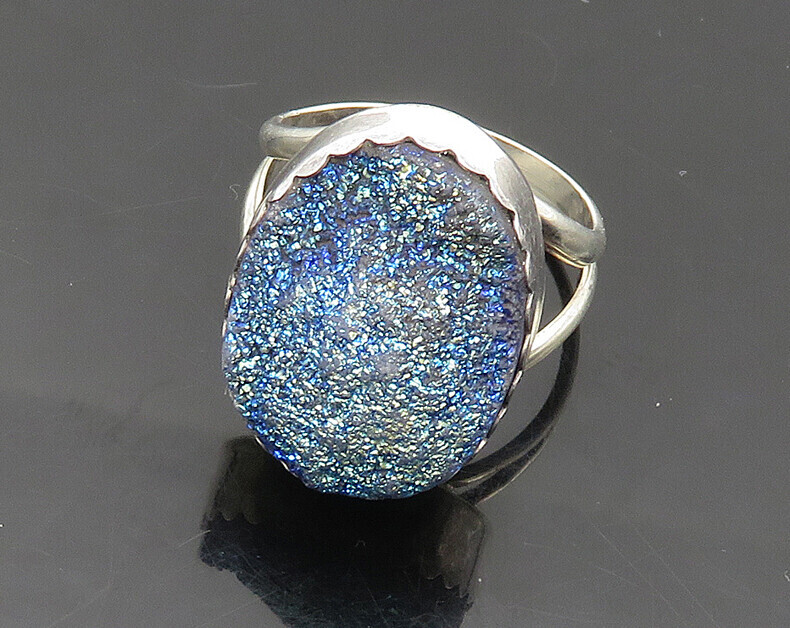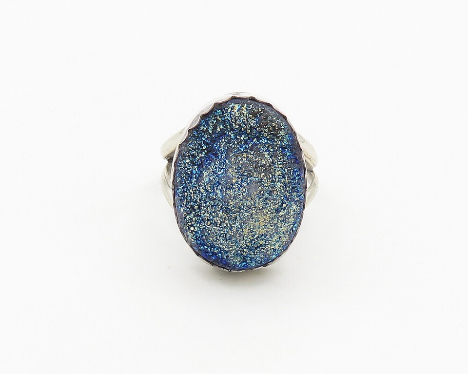BERNADINE BEGAY TSOSIE NAVAJO 925 Silver Vintage Druzy Ring Sz 8 RG17854
