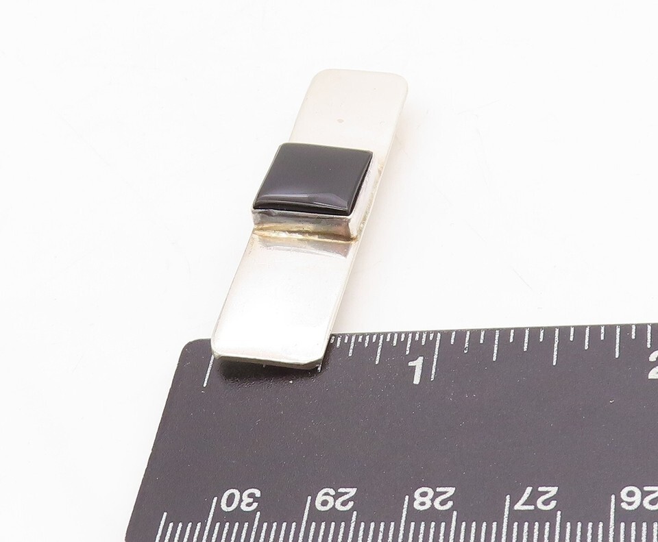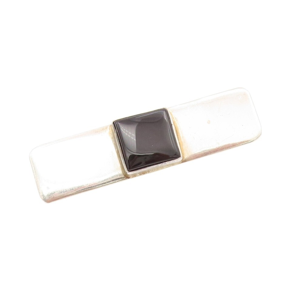 925 Sterling Silver Vintage Brooch Pin Minimalist Square Onyx Inlay BP11465