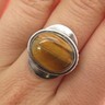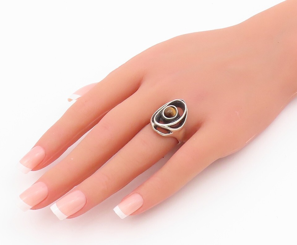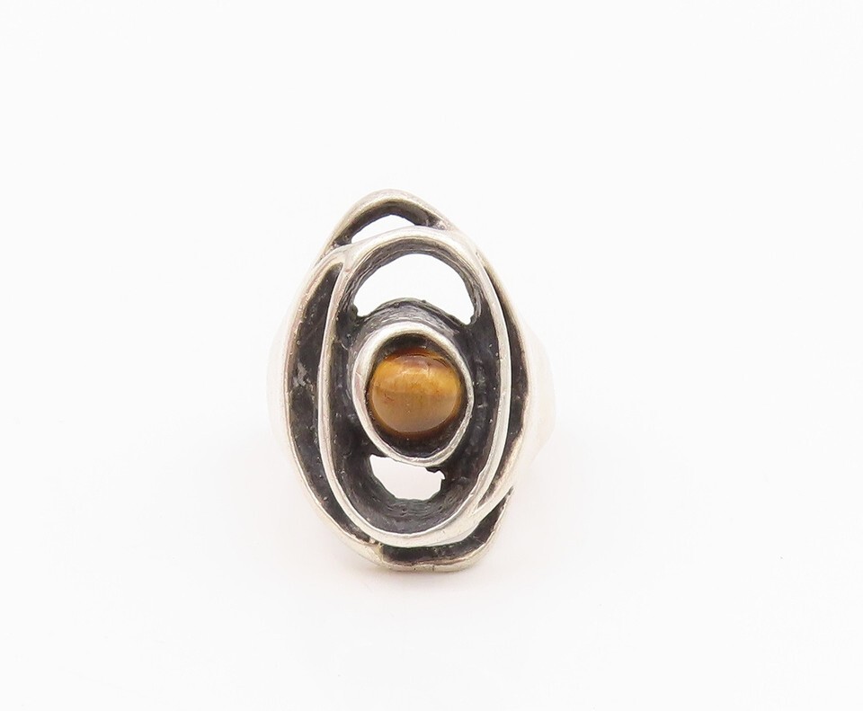 925 Sterling Silver Vintage Ring Dark Tone Brutalist Tiger's Eye Sz 7 RG33033