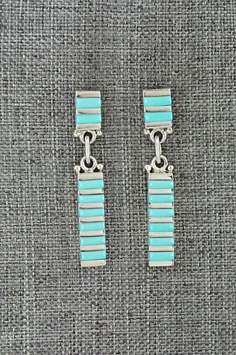SOUTHWESTERN 925 Silver Vintage Turquoise Floral Non Pierce Earrings EG11085