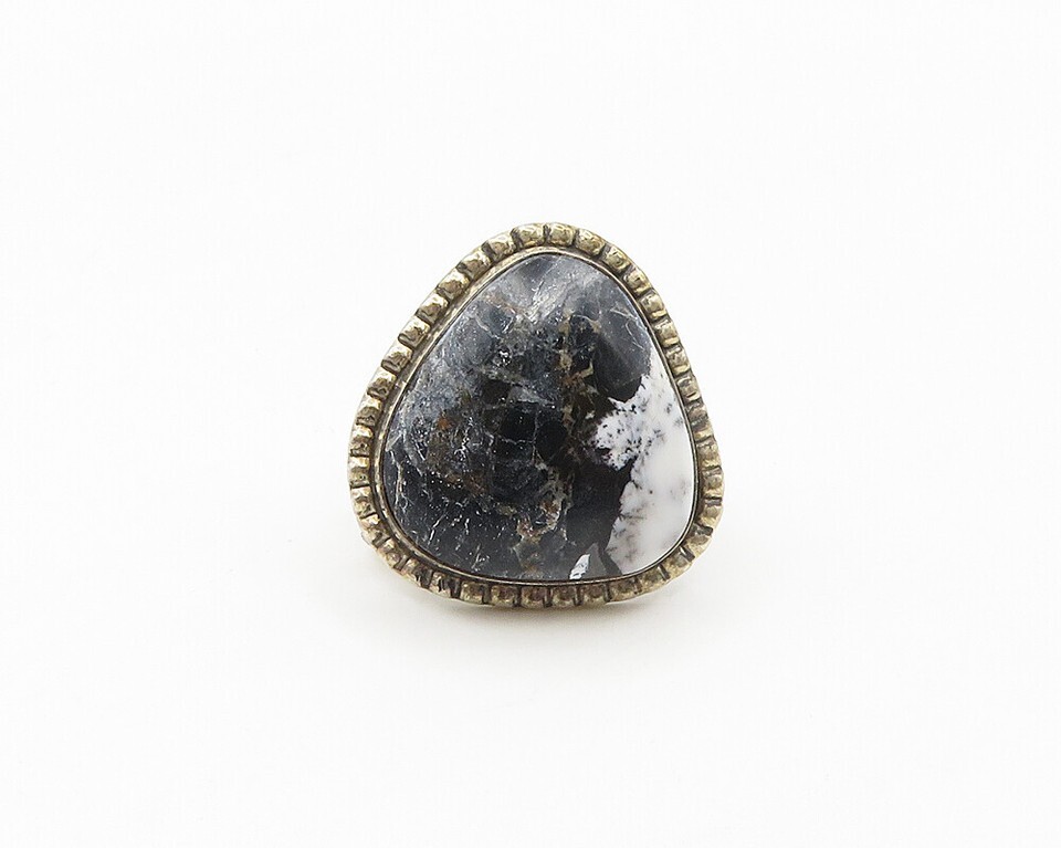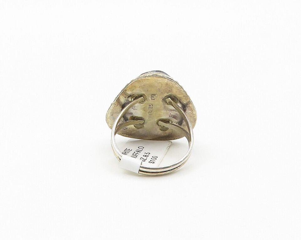 ELI SKEETS NAVAJO 925 Silver Vintage Jasper Cocktail Ring Sz 8.5 RG17862