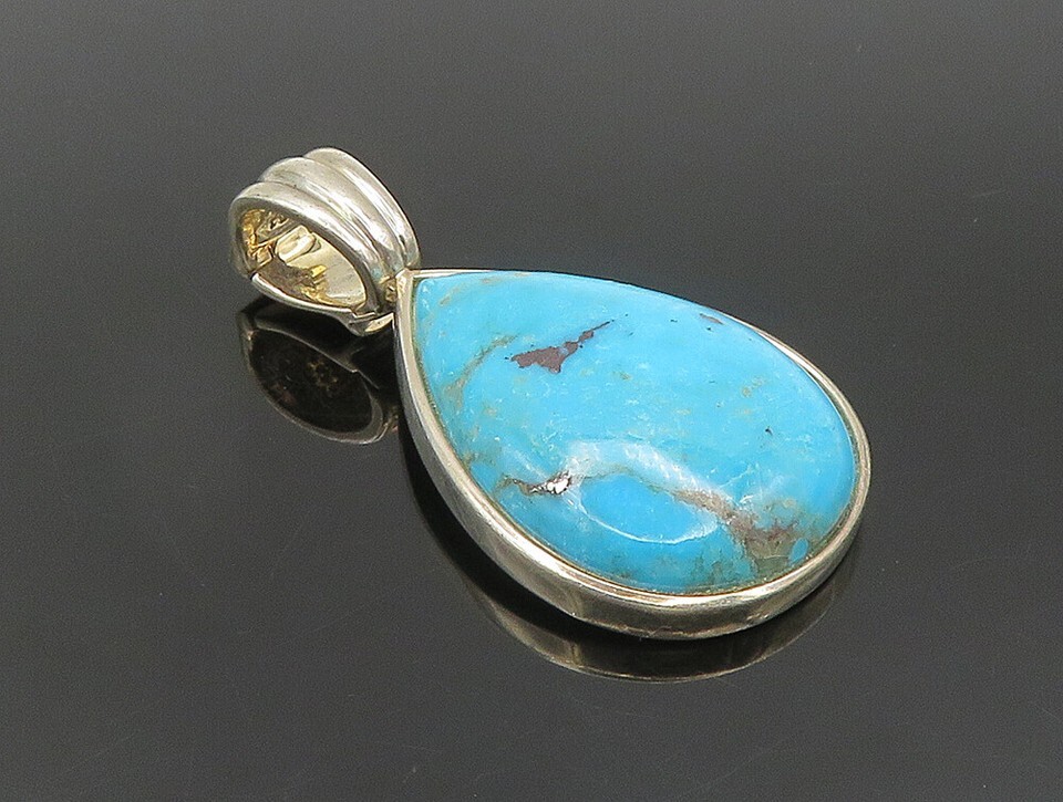 WHITNEY KELLY 925 Silver Vintage Pear Shaped Turquoise Drop Pendant PT20193