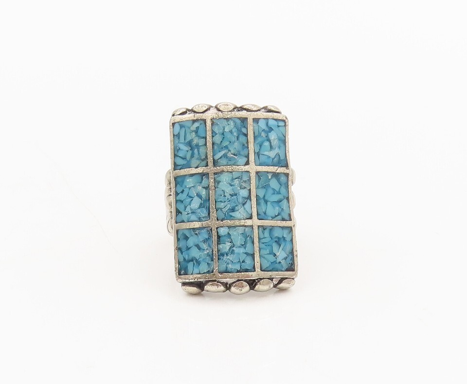 NAVAJO ZUNI 925 Sterling Silver Vintage Crushed Turquoise Ring Sz 7.75 RG26848