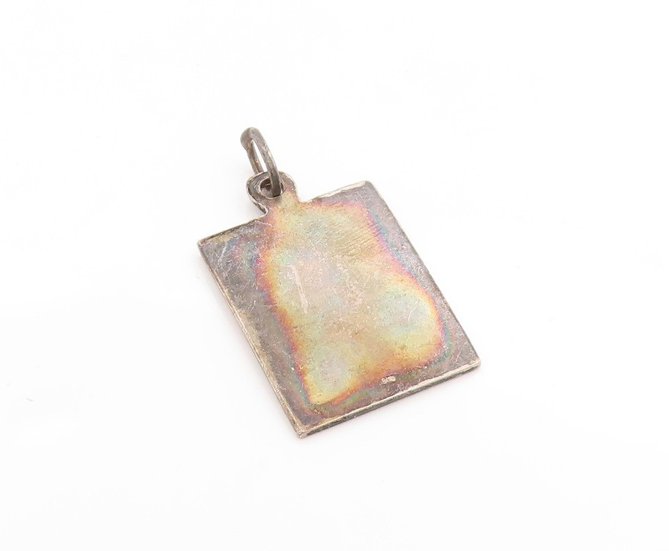 925 Sterling Silver Vintage Pendant Enameled RH Factor Medical ID Tag PT25026
