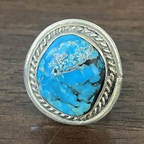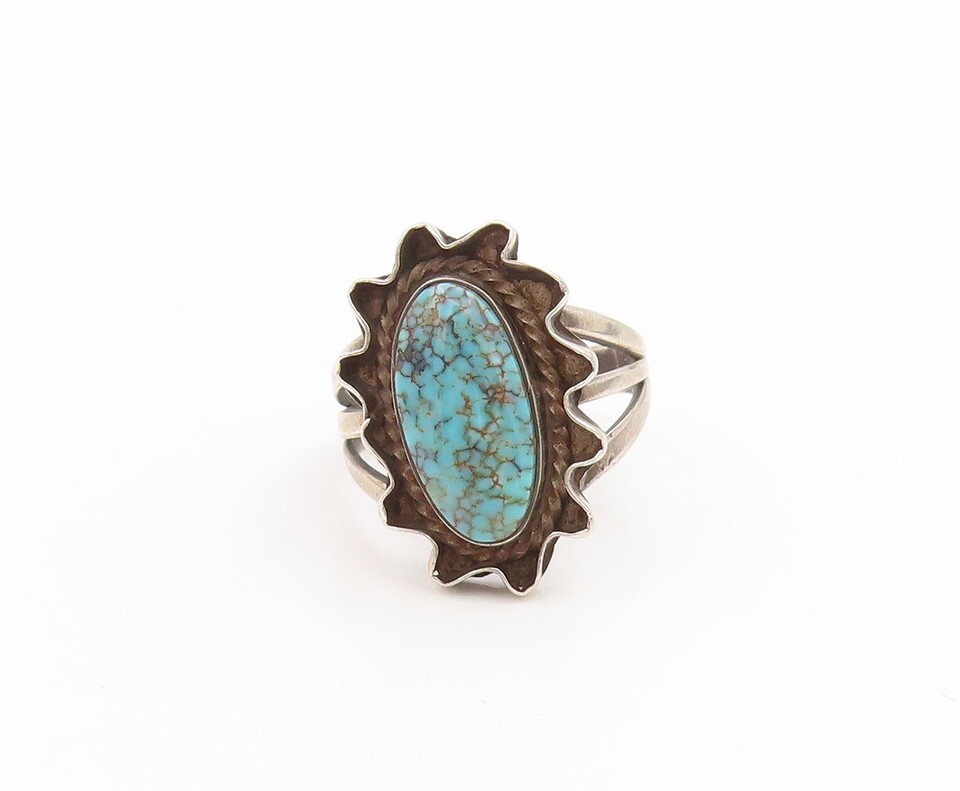 925 Sterling Silver Vintage Ring SOUTHWESTERN Cabochon Turquoise Sz 6 RG33917