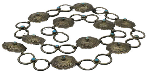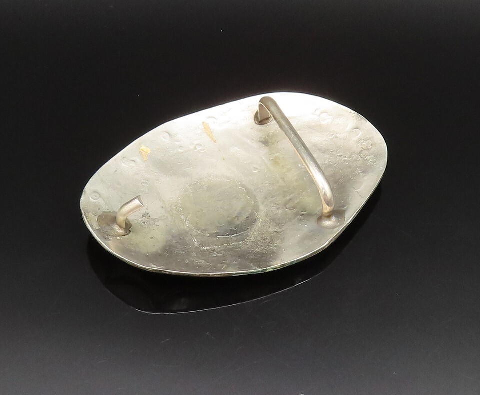 SOUTHWESTERN 925 Silver Vintage Etched Turquoise & Coral Belt Buckle TR3384