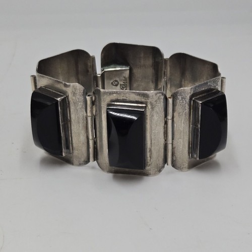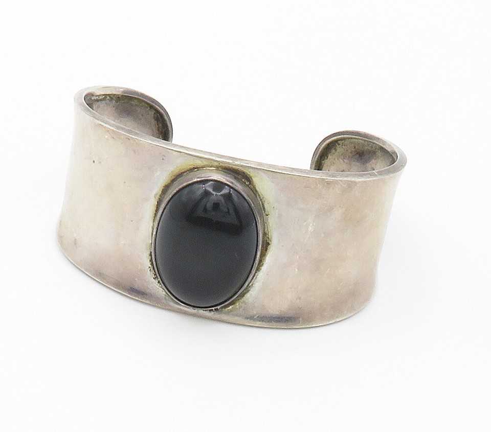 CII MEXICO 925 Sterling Silver Vintage Black Onyx Cuff Bracelet BT5930