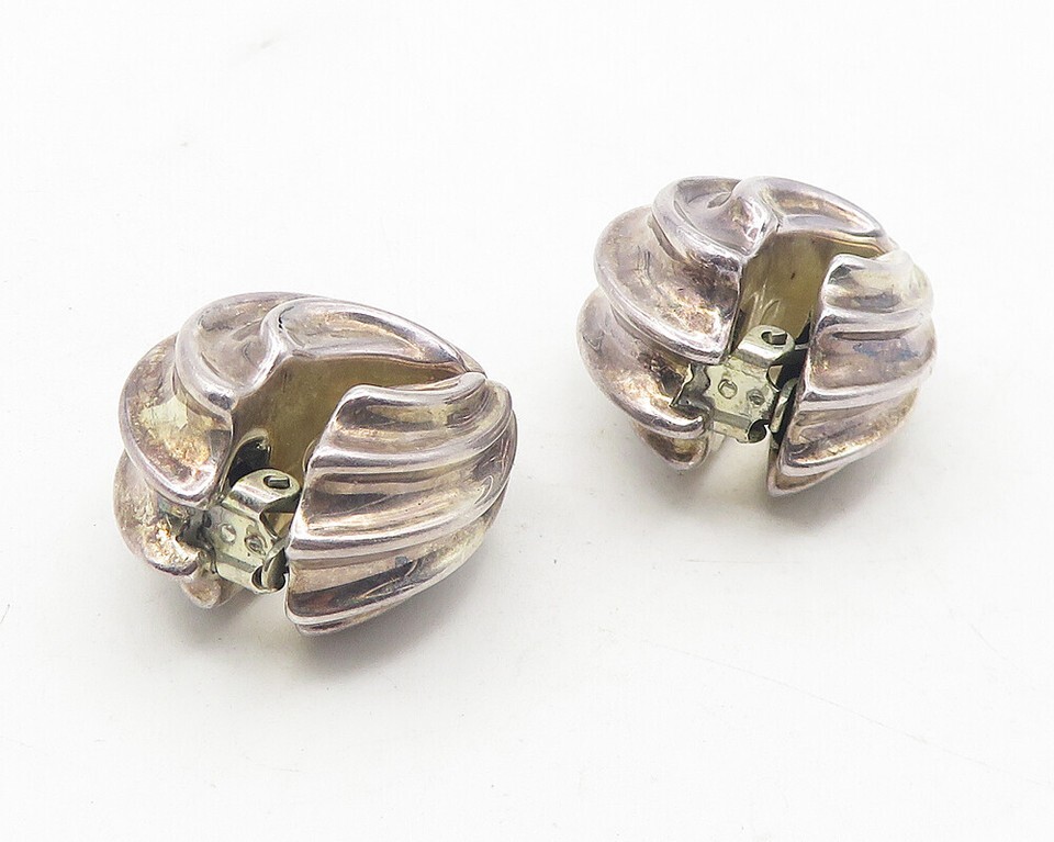 JORDAN SCHLANGER 925 Silver Vintage Scalloped Non Pierce Earrings EG6229