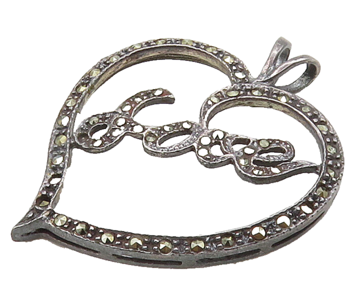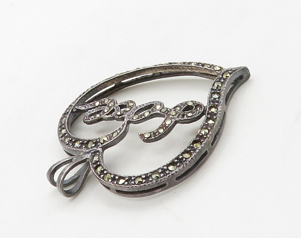 925 Sterling Silver Vintage Shiny Marcasite Open Love Heart Pendant PT12645