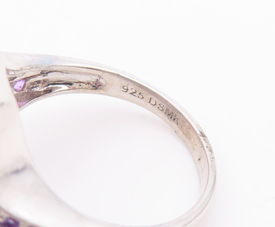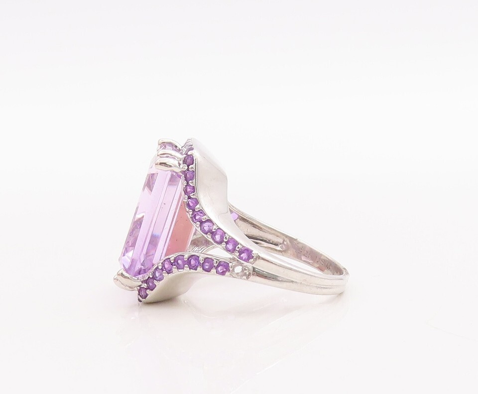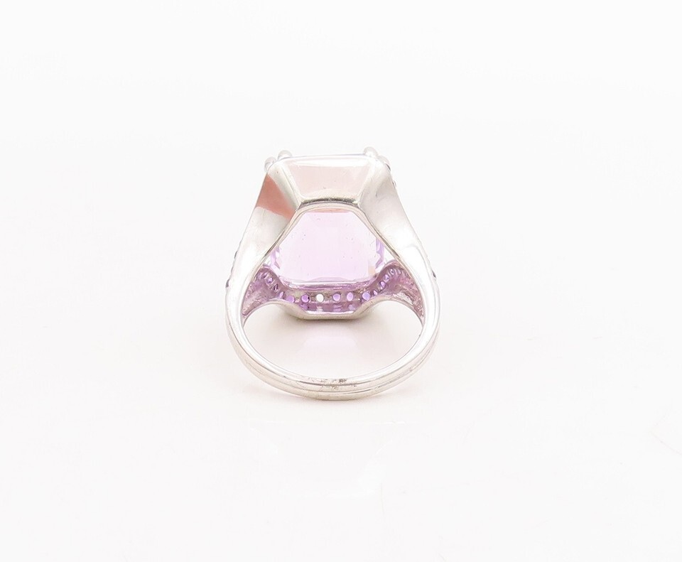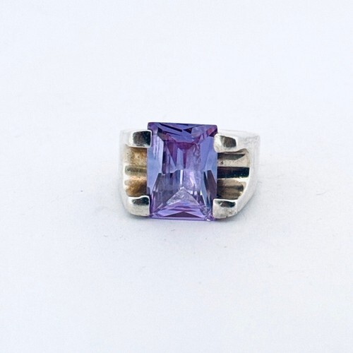 925 Sterling Silver Vintage Ring Rectangle Amethyst Split Neck Sz 7 RG29168